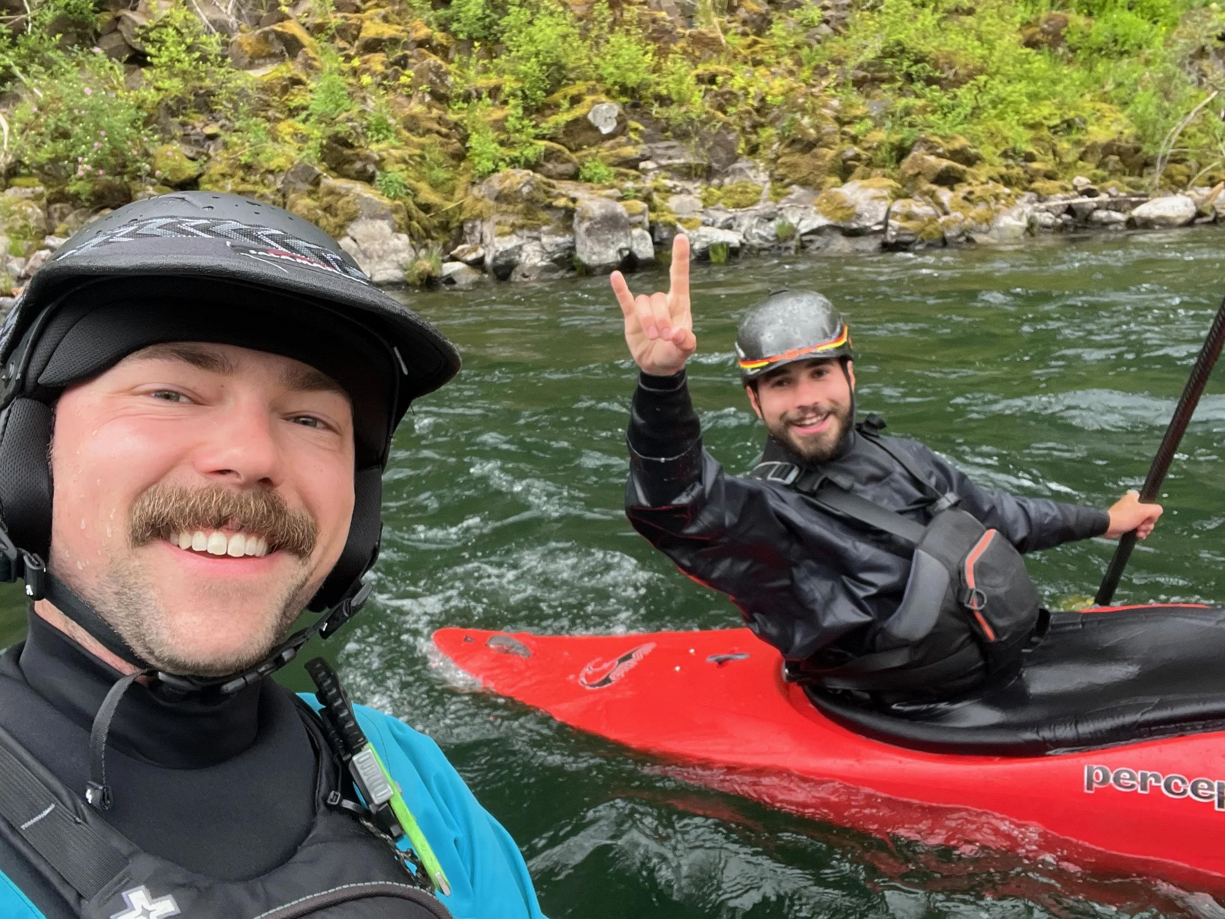 Fast forward a year and I am at the takeout of Packsaddle on the North Santiam. I see a raft guide who looks familiar. We both looked at each other a little funny, until I said “What is your name?” He said “Pascal,” with a little bit of a confused look on his face. That quickly turned into a series of “holy sh*ts” and hugs, as if we knew each other better than we did. The next Summer, 2025, I bumped into Pascal at the starting point of a Clack Fest race. We boated together a couple times that Summer.